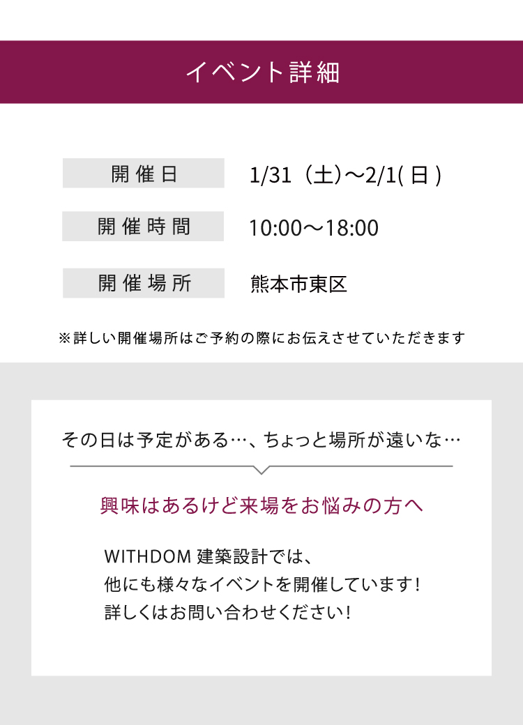 限定的なこの機会に、ぜひWITHDOM建築設計 熊本スタジオまでお越しください!