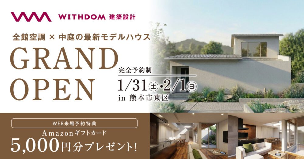 2026年1月31日(土)〜2月1日(日)に熊本市東区にてWITHDOM建築設計 熊本スタジオのモデルハウスがグランドオープンいたします!